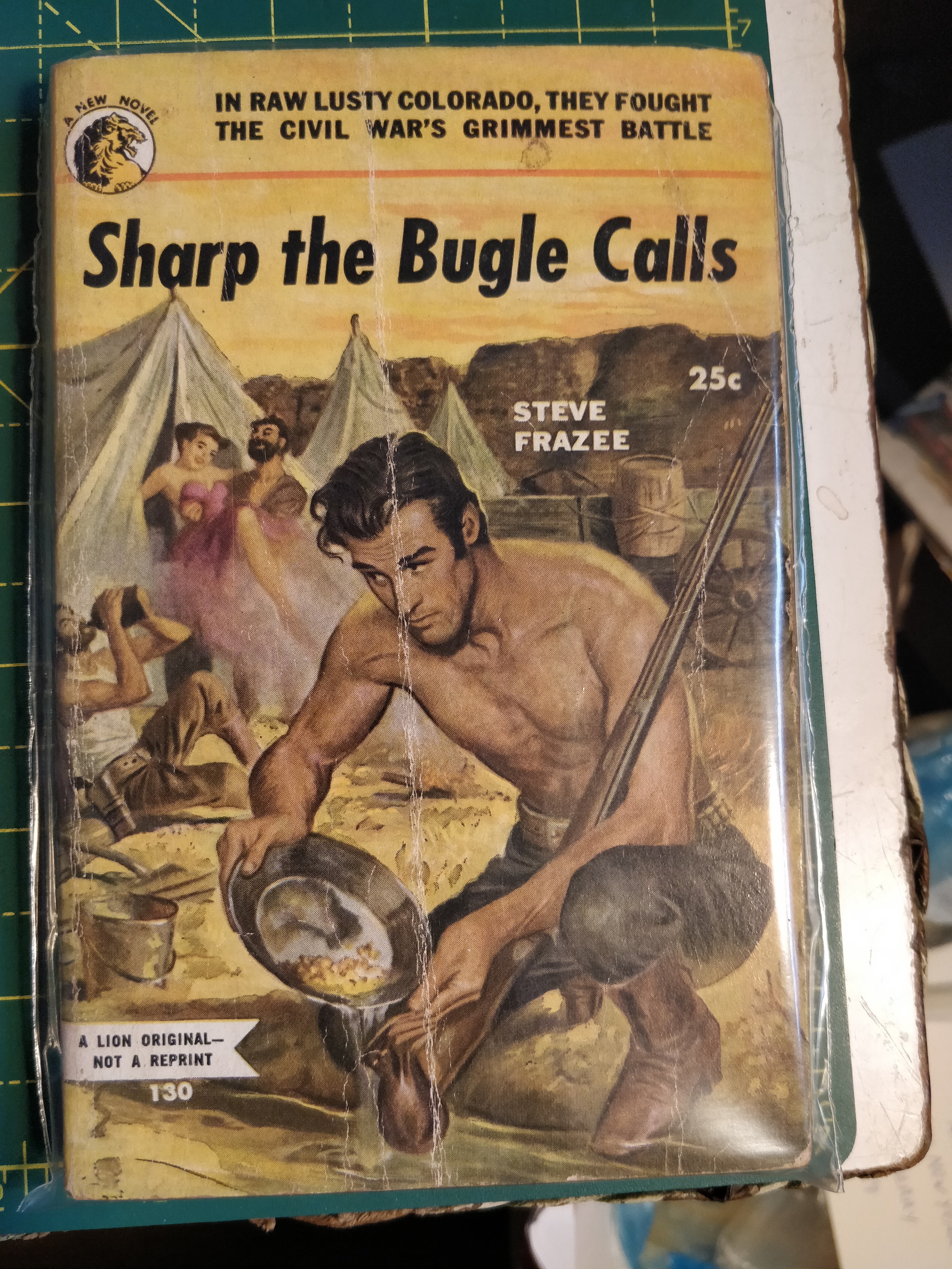 Lion 1955 1st vg “In Raw lusty Colorado, they fought the (American) Civil War’s Grimmest Battle. Other Frazee in stock (I think) Auther Title Publisher Condition Date Edition Frazee Steve He Rode Alone Gold Medal UK vg+ 1957 Frazee Steve Gold of the Seven Saints Consul vg+ 1st Frazee Steve Tumbling Range Woman Perma vg 1956 1st Price includes UK Posting – For other postal rates to more distant locations please contact me.