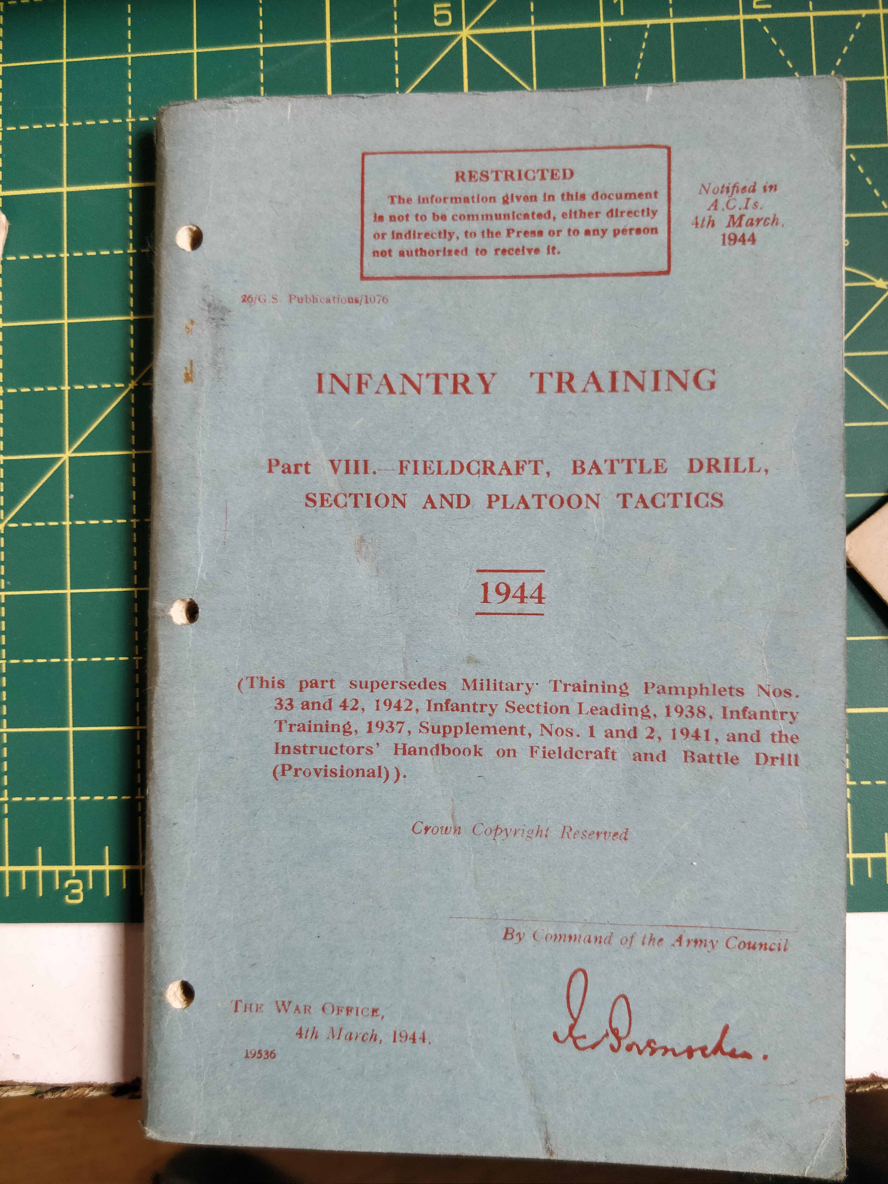 The war Office 4th March 1944 132 pages The Price includes UK Posting using Royal Mail For rates to more far flung locations please contact me. questions to notinheckmondwikebookshop@gmail.com