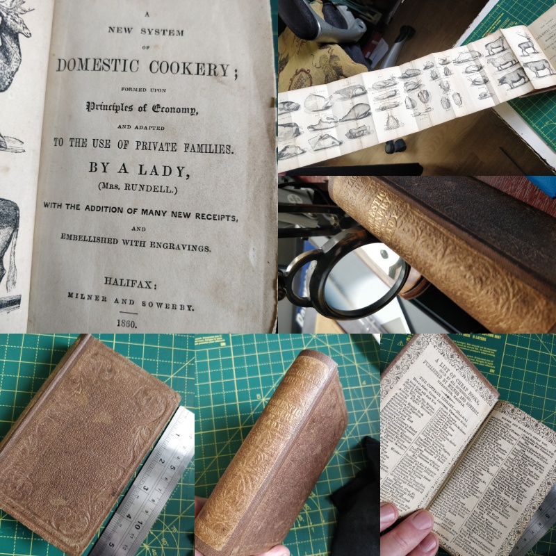 A New System of Domestic Cookery formed on principles of Economy To the Use of Private Families BY A LADY (Mrs Rundell). This copy that has been very well rebound was published in HALIFAX by Milner and Sowerby 160. 5″ X 3″ 376 pages. So a very small book perfectly formed. With fold out illustrations. Price includes UK Posting – For other postal rates to more distant locations please contact me.